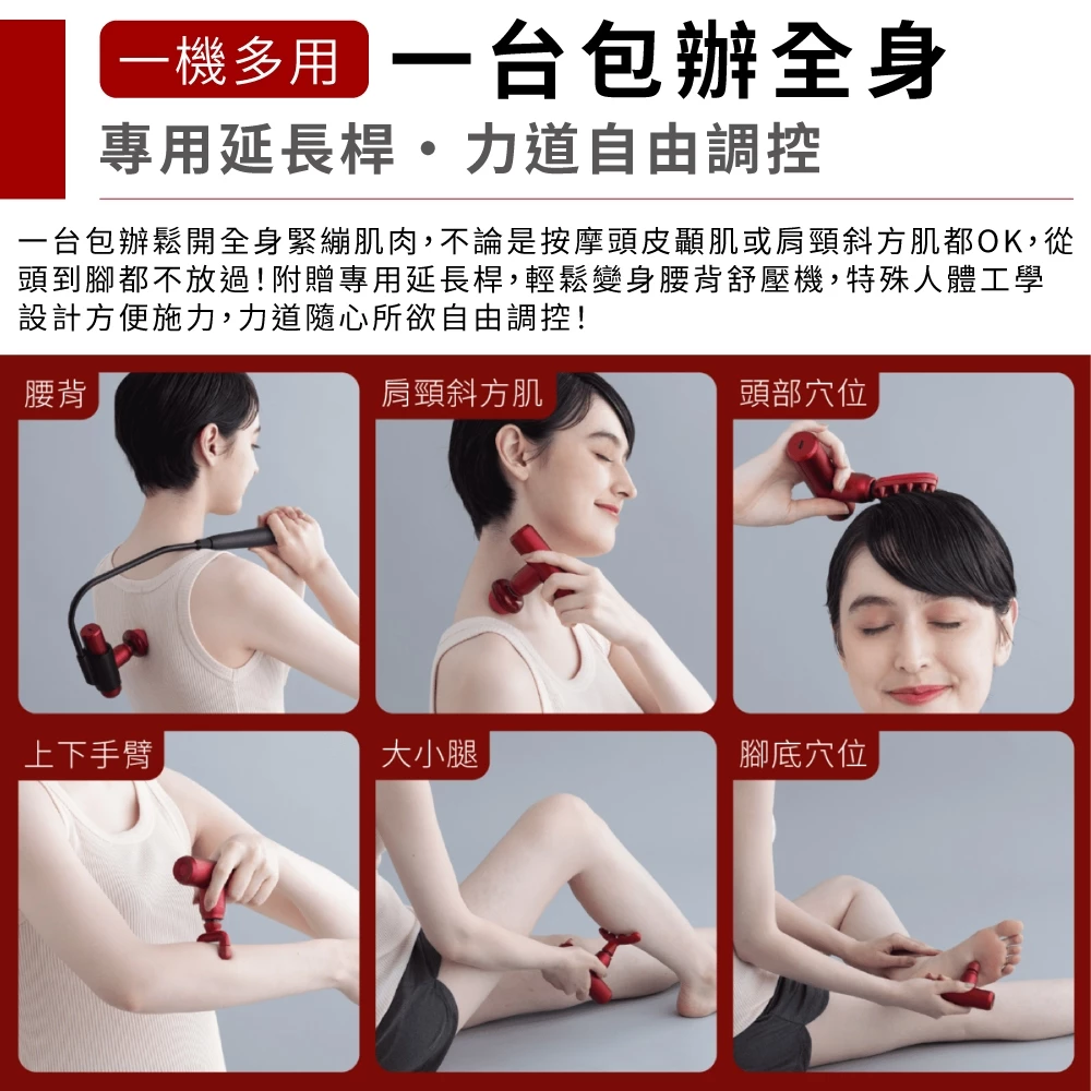 ●獨家不求人|首創肩背伸縮桿,針對腰背及肩胛骨